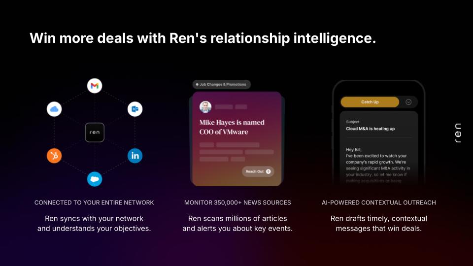 Whether novice or seasoned, sales professionals rely on Ren to build networks and nurture existing relationships. We are excited to further tap into the power of Ren and look forward to using our experience to help evolve its product and expand its market presence.